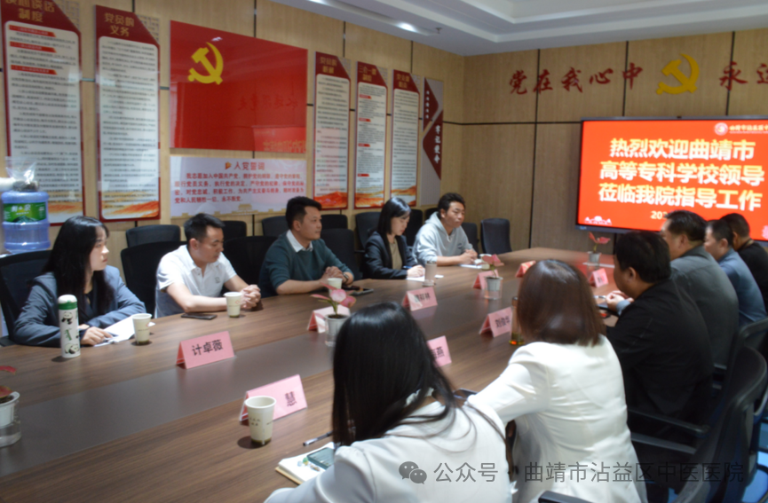 为进一步加强院校交流合作,持续推进医教协同发展。3月28日,曲靖医学高等专科学校中医学院党支部书记魏祥林一行到我院,就院校合作相关事宜进行交流座谈,我院领导班子及相关科室负责人参加座谈会。